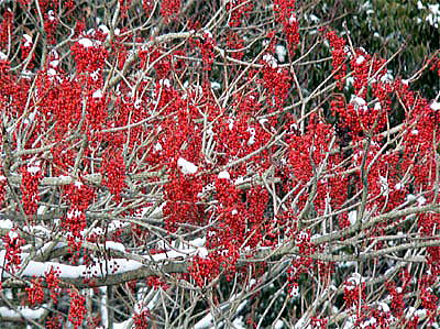 L10222 イイギリ 05.12.06 県道30号線白鳥温泉付近 左の写真の木です。葉が落ちたときが最も美しいので落葉を待っていたら、初雪が降ってしまいました。陽が照らず、美しさが出ていませんが・・・。