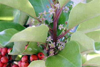 暖帯から亜熱帯の山野に生える雌雄異株の常緑高木ですが、自生している木は少ないと思います。
