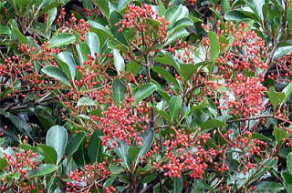 スイカズラ科ガマズミ属の常緑小高木です(ガマズミの仲間で常緑は、サンゴジュとハクサンボクぐらいで、殆ど落葉樹です)。