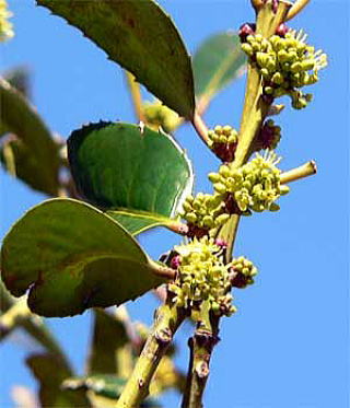 中でも、学園木花台のタラヨウの中には、狂い咲きしたのでしょうか、今を盛りに花を咲かせている株があり、びっくりしました。