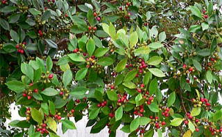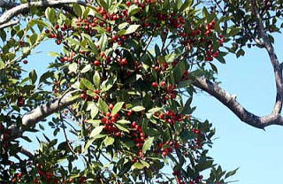 和名の黐の木(もちのき)は、樹皮から鳥もちを作ることができることに基づく。