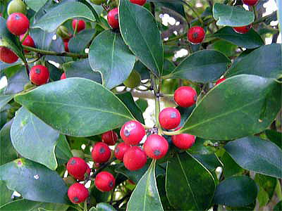 猛暑、台風、暖冬などの異常気象のせいか、同じ木に全く実がついていない年や、12月末というのに、まだ実は青々として赤熟する気配を見せていない年、赤い実と青い実が同居している年など、いろいろで、モチノキの実は全く気まぐれのようです。