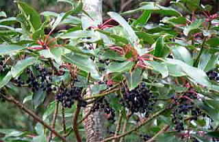 本来は、もっと熟して黒褐色になるはずですが、写真はまだ若い実です。