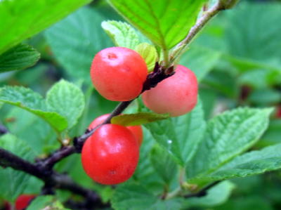 2015年、同じユスラウメの木がたくさんの美しい果実をつけていましたので、写真を追加しました(4段目の2枚の写真)。