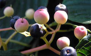 本来は黒熟しますが、落果が多く、途中でまばらになってしまいますので、若い青い実を掲載しておきます。