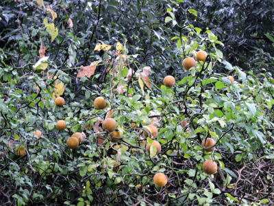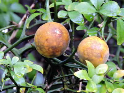 果実は径3〜4cm、芳香があり、枳実(きじつ)と呼ばれ、薬用にするそうです。