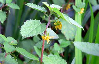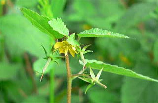 花は、黄色い5弁花で、径1.5cm位、雄しべよりはるかに長い仮雄しべが見えます。