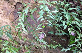 花は夏、枝先に8〜20cmの穂を出し、1方に偏って紫花をつけます。