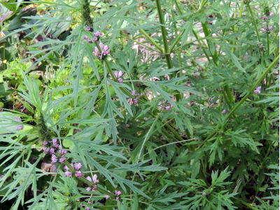メハジキは、独特の葉形と、茎の上部に輪生する美しい花の目立つ草です。