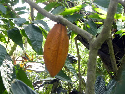 種子は、長さ 3cm ほどで,ココアやチョコレートの原料となる。