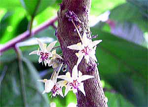花は、幹や太い枝に集散花序につく。