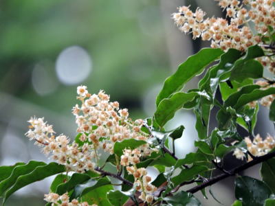 直前の降雨で、花が少し傷んでいるようですが、幸運にも花真っ盛りのリンボクに出会うことができました。