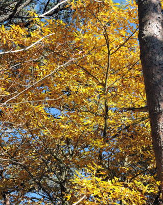 10月の2度の台風に遭い、紅葉シーズン前に大半の木々がすっかり落葉したえびの高原ですが、黄金色に輝くこのカナクギノキは、訪れた人々の目を楽しませていました。