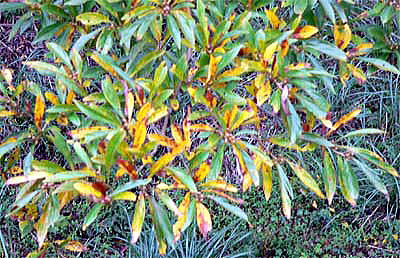 2014年11月初め、えびの高原で、見事に黄葉したカナクギノキを見かけましたので、写真を追加しました(3〜4段目の4枚の写真)。