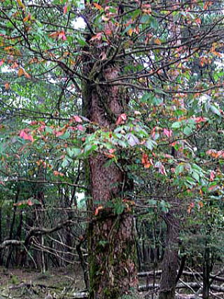 ツタウルシは、えびの霧島の山林中には多く見られ、わがもの顔に他の木に這い登って、茂っています。