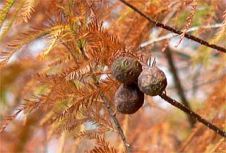 似ているメタセコイア(スギ科メタセコイア属)は小葉が対生、ラクウショウの小葉は互生ですから容易に区別できますが、遠目には分かりません。