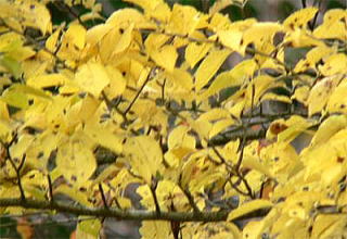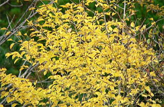 ウメモドキといえば、真っ赤に熟した果実が美しい木で有名ですが、こんなにきれいに黄葉するとは知りませんでした。
