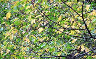 同じく、イヌビワも、緑の葉と黄色の葉が混在しながら黄葉するのが特徴のようです。