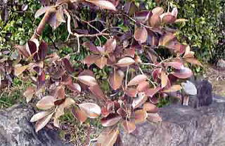バンジロウの果実は、同じ木で別途紹介しましたが、常緑樹なのに冬は写真に見るようにあたかも紅葉のような状態でした。