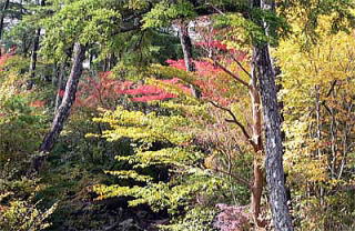 L09394 中央横に伸びるマンサクの黄葉 05.10.29 県道30号線