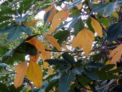 カクレミノ黄葉 ウコギ科 カクレミノ属 別名 カラミツデ、テングノウチワ、ミツナガシワ
