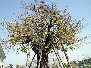 高さ20m位で、四方に枝を広げ,小枝は傷つけると、乳汁が出る。