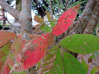 葉は3出複葉,小葉の長さ5~14cm。秋に紅葉する。