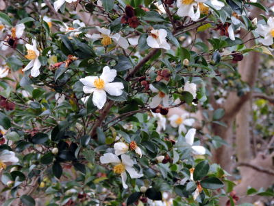 ツバキ科のサザンカとツバキは、花の少ない冬季に美しい彩りをもたらす、貴重な冬の花ですが、どちらかというとサザンカの方が早く咲くようです。