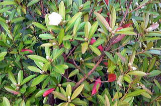 花を見る限りでは、ツバキ科と思われましたが、葉はツバキ、サザンカ、チャノキなどとは、全然様子が違います。