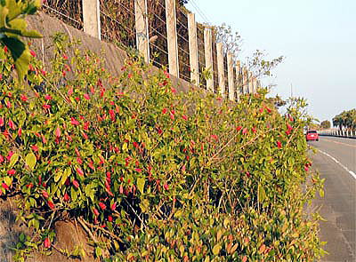 参考までに、日南海岸220号線の沿道修景に使われているマルバビスカスの写真を載せておきます。