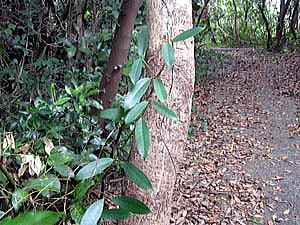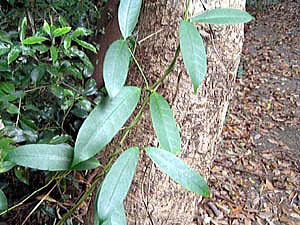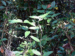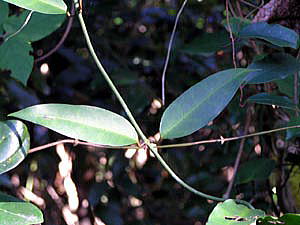 林内に生える常緑つる植物。