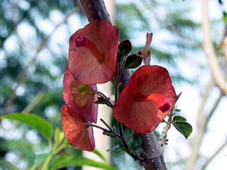 日南海岸の道の駅フェニックスで、ユニークで面白い形の花を咲かせる花木を見かけました。