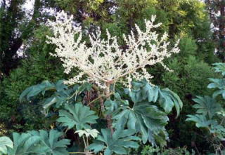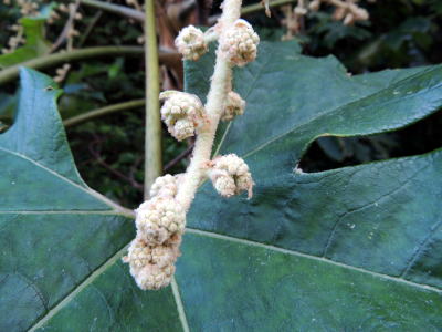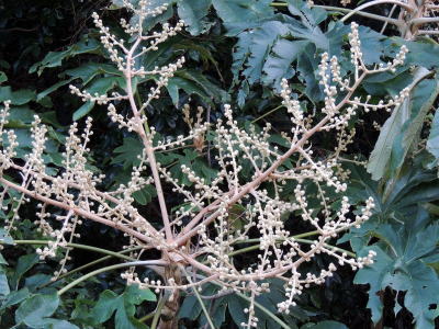 葉はヤツデに似ていますが、大形で質も厚いようです。