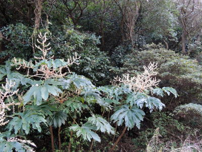 2013年12月初め、220号線旧道鵜戸付近を散策中、群生するカミヤツデを見かけました。