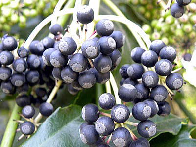 その後、見事に黒熟したヤツデの果実を観察しましたので、写真を追加しました(下の2枚の写真)。
