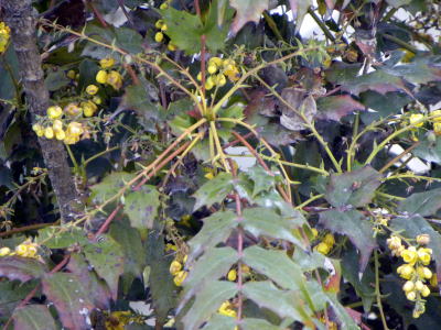 巨大なヒイラギナンテン(園芸種ウインター・サン)の果実も掲載してあります。
