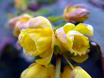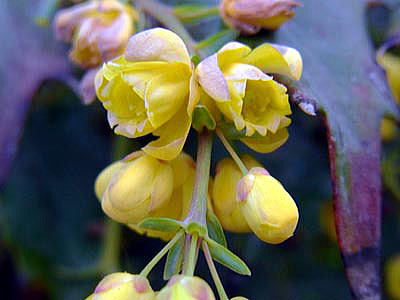 2011年は寒い日が続いたためか、3月にヒイラギナンテンがようやく開花しました。写真を追加します(右側の上の写真及び4〜5段目の写真)。
