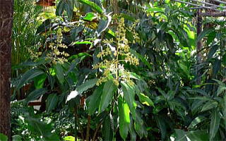 本来の樹高は、10〜30mになる常緑高木ですが、温室での栽培は、低く抑えられています。
