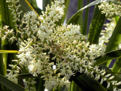 葉は無柄、剣状で革質、光沢ある緑色。茎頂に直立か斜上に叢生し、下垂はアーチ状に垂下する。