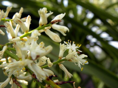 県総合運動公園では、センネンボクと標示してありましたが、このホ−ムページでは、ニオイシュロランの別名のセンネンボクランの表記名で掲載しました。