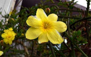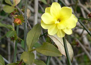 1月から咲き始めることがあるといわれるオウバイ(黄梅)(日本の樹木 (山と渓谷社)))かと思いましたが、オウバイは落葉小低木(半蔓性)で、写真のものは明らかに常緑樹です。