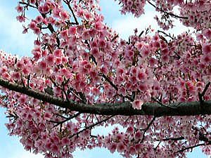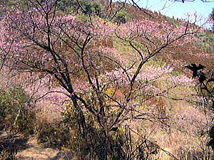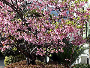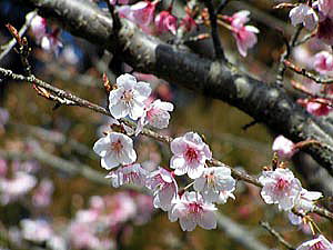 早春に花を咲かせる都城市立図書館の寒桜の写真を、このホームページにも掲載していますが、最近、北郷町の【日南寒咲1号】の記事が郷土紙に出ていましたので、早速、観察に出掛けました。