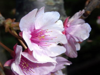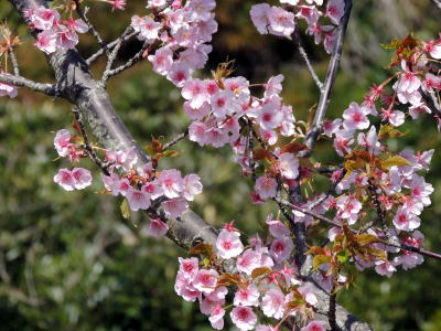 1955年頃、静岡県河津町の河津川沿いで発見されて移植・栽培されていたものが、1966年から咲くようになり、1968年頃から増殖され、1974年に 河津桜(カワヅザクラ)と名付けられ、原木のある河津町には、立派な桜並木もあり、1月下旬頃から咲き始めるそうです。
