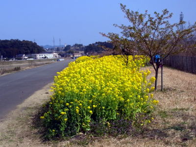 菜の花と河津桜の見事な遊歩道になるまで、数年間、お待ちくださいとのことです。