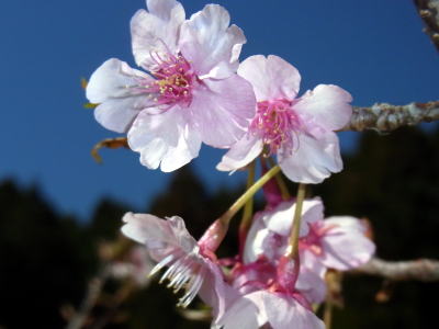 温暖な気候の本県では、カンザクラ、カンヒザクラ、日南寒咲1号(日南市松盛園で開発された桜)等の早咲きのサクラが、ソメイヨシノに先立って、早くも1月には開花します。