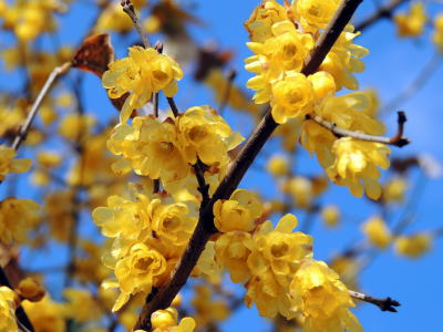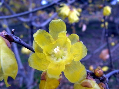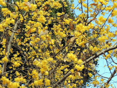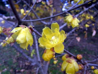 蜜蝋色のロウバイの花がちょうど一斉に咲き揃い、辺りには甘い花の香りが漂っていました。
