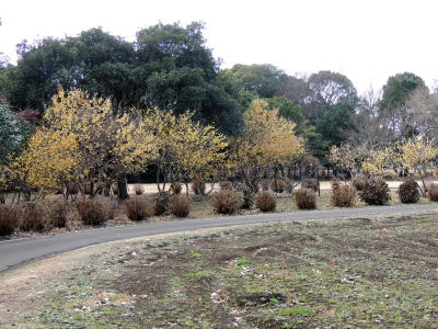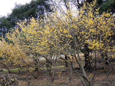 園内東側のちょっとした林の中に、まとまって20本のロウバイが植栽されています。