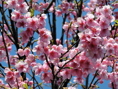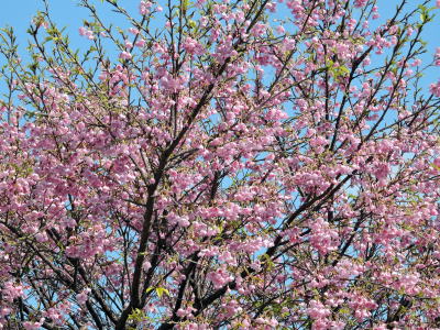 比較的風雨に強いサクラとのことで、枝いっぱいに濃いピンク色のたくさんの花をつけ、寒風に揺れながら美しく咲き誇っていました。