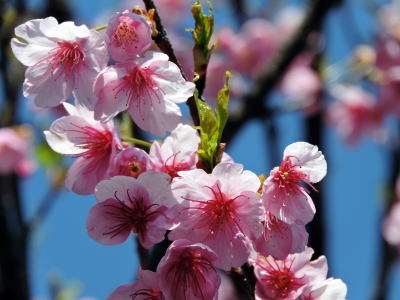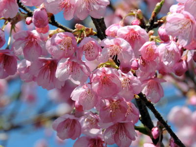 ① 1~2月に開花するカンヒザクラ、カンザクラ、日南寒咲1号、カワヅザクラ、