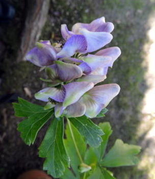 ちょうど開花期と見え、僧帽状円錐形のかぶとに似た菫色(すみれいろ)のユニークな花を咲かせていました。